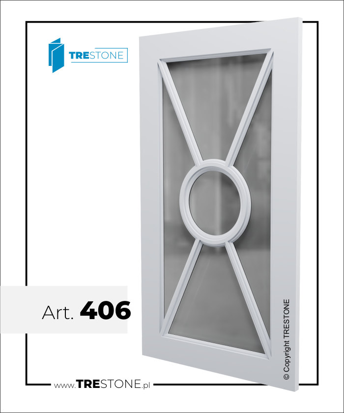 Art. 406 - witryna ze szprosami. Szerokość ramki i wzór szprosów dopasowany do pozostałych frontów pełnych. Front bez szklenia.