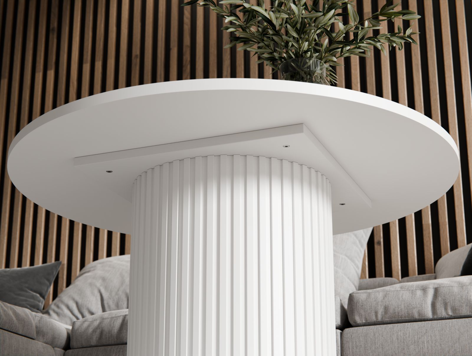 - Ozdobna noga wykonana z frezowanego, giętego MDF, lakierowana w dowolnym kolorze, która przykuwa wzrok. Stoliki RYFLE doskonale będą wyglądać zarówno we wnętrzu w stylu glamour jak i nowoczesnych aranżacjach.