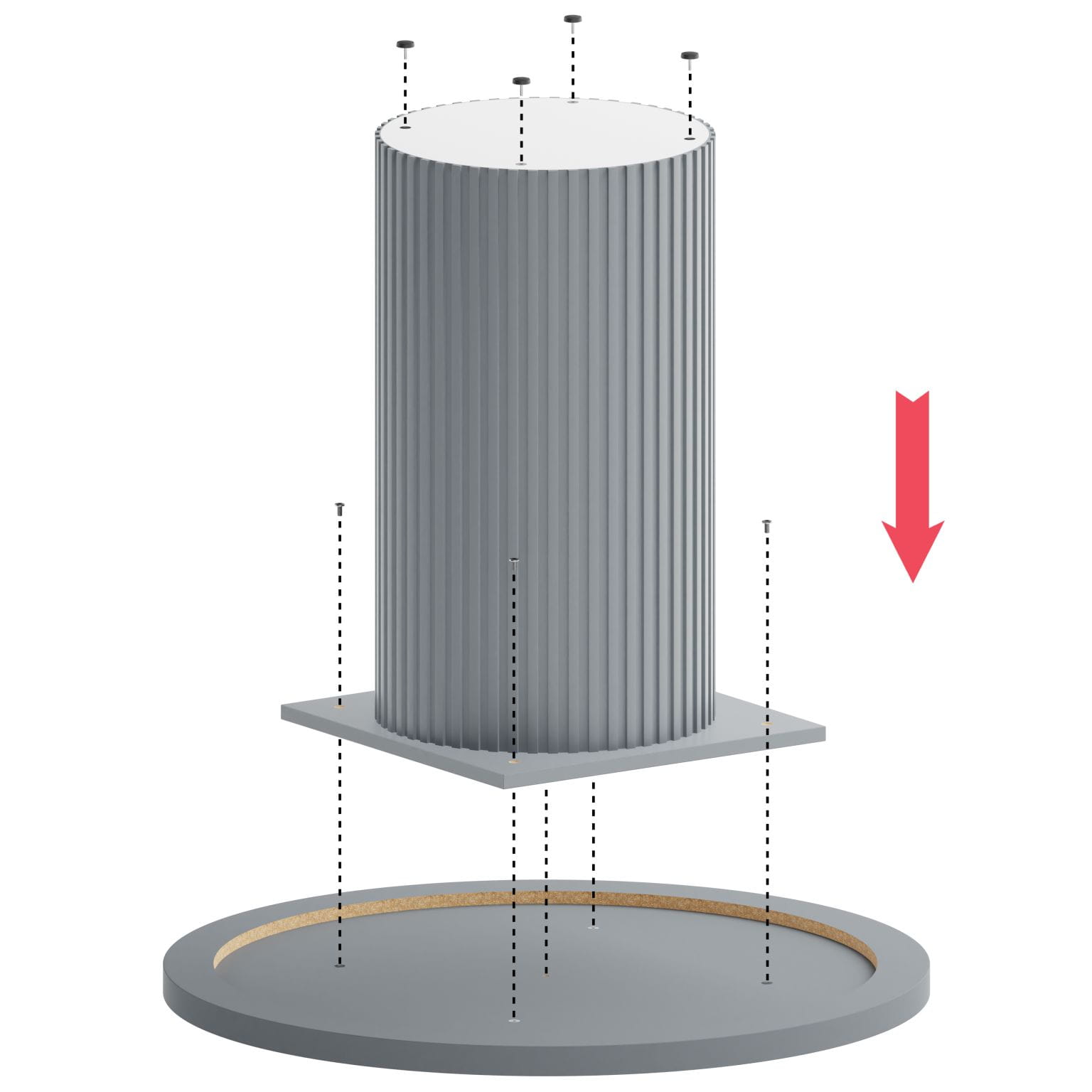 Produkt wysyłany w dwóch częściach (noga i blat). Montaż jest banalnie prosty, wystarczy przykręcić kilka śrub. Klucz i śruby zawarte są w zestawie.